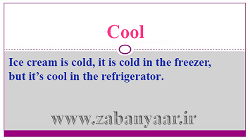 کاربردهای مختلف COOL در زبان انگلیسی !Cool معنیِ پایه ایِ cool مربوط به دمایِ پایین است. برای مثال در پاییز هوا cool می شود. cool به معنی خنک و دمایِ بین گرم و سرد می باشد: .Ice cream is cold, it is cold in the freezer, but it’s cool in the refrigerator …